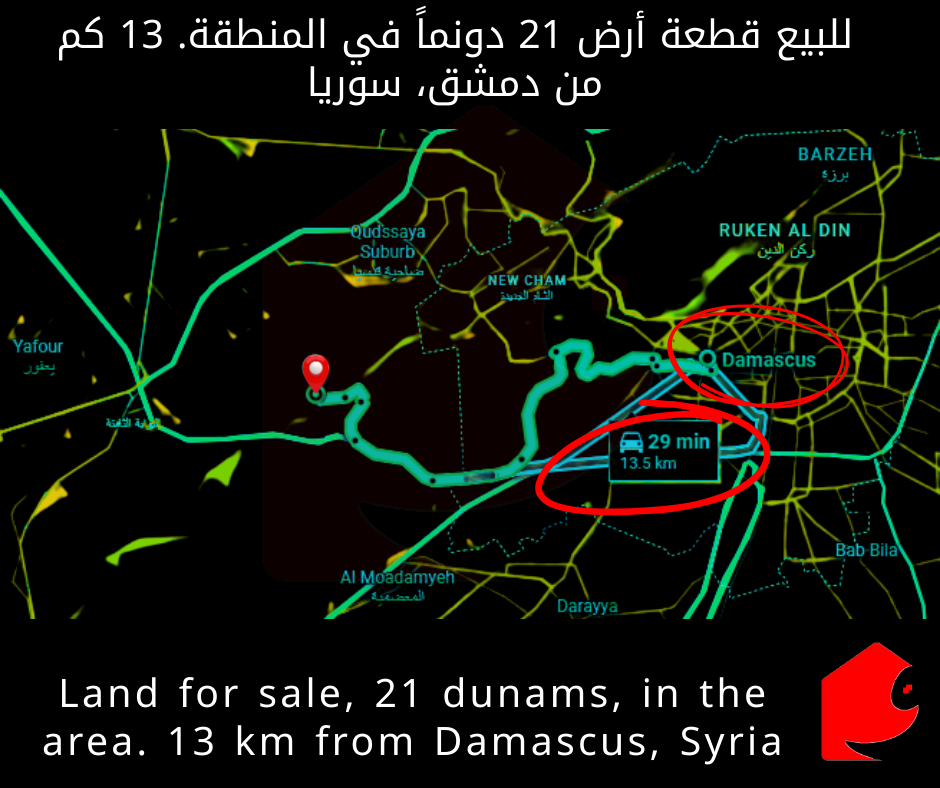 للبيع قطعة أرض 21 دونماً في المنطقة. 13 كم من دمشق، سوريا